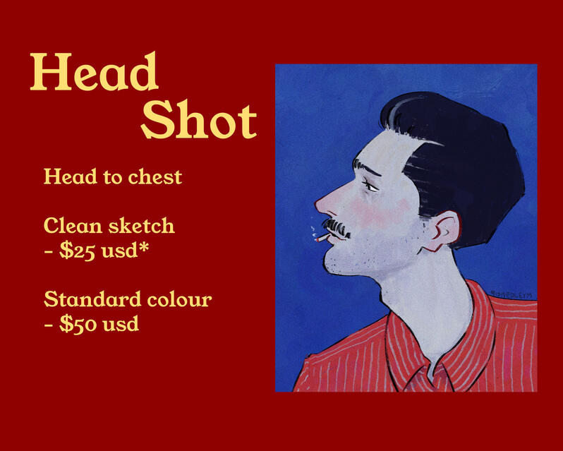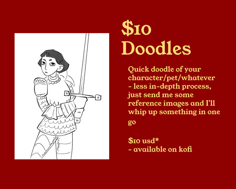 *Sketches and doodles require full payment up front.- Listed prices are subject to change based on complexity.